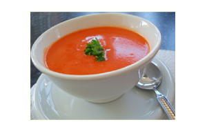 Coloque em um recipiente e refrigere por duas horas. Quando estiver fria, tempere com sal e pimenta e coloque alguns cubos de gelo. O gaspacho é tradicionalmente servido acompanhado de ovos cozidos picados, pimentão verde e vermelho, pepino e azeitonas pretas, separados em pequenas tigelas.