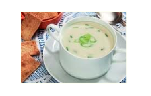 Refogue os alhos poró e a cebola na margarina light. Não deixe dourar, apenas deixe-os transparentes. Junte o caldo e as batatas.