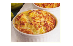 3. Com 3 colheres (chá) de azeite de oliva, unte 6 assadeiras próprias para suflê (capacidade para 100 ml), disponha a massa e leve ao forno preaquecido em temperatura baixa (160ºC) por 30 minutos ou até dourar a superfície. Retire do forno.